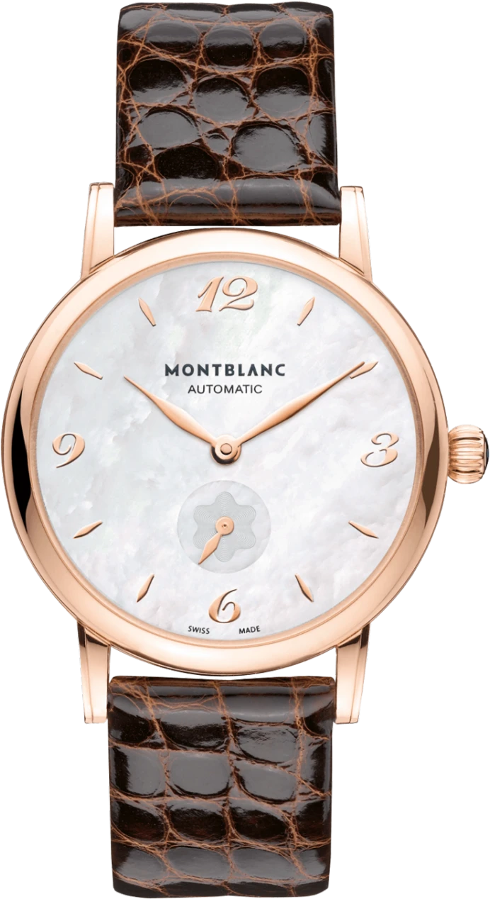 Vương miện: Vương miện không vít, 1 vòng chữ O, vàng đỏ 18 K có biểu tượng Montblanc xà cừ