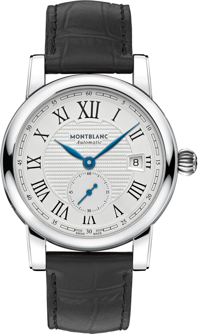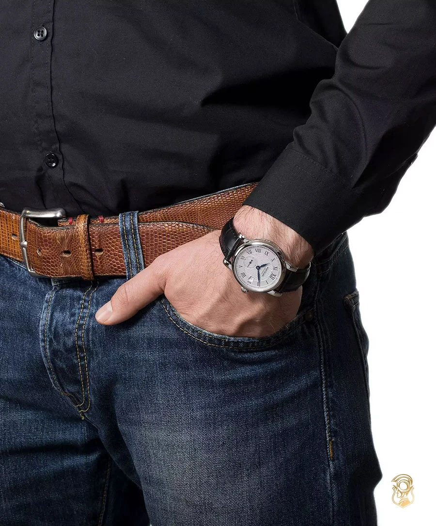 Mặt số: Mặt số guilloché màu trắng bạc với các chữ số màu đen