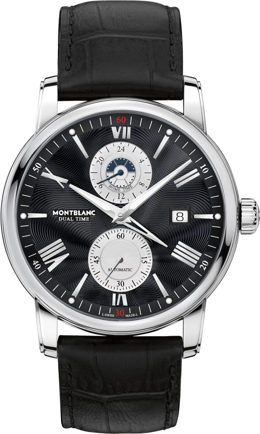 Lấy cảm hứng từ thời đại mà thương mại và du lịch xuyên Đại Tây Dương đã đưa thế giới đến gần nhau hơn, Bộ sưu tập Montblanc 4810 giới thiệu một chiếc đồng hồ có tính năng phức tạp được khách du lịch toàn cầu ngày nay đánh giá cao: tính năng sản xuất có chức năng cao của Montblanc hai thời gian. Trong khi kim đồng hồ mạ vàng hồng ở giữa biểu thị giờ địa phương, kim đồng hồ có khung màu xanh lam hiển thị giờ hiện tại ở nhà. Nó được liên kết với một kim trên màn hình 24 giờ ở vị trí 12 giờ, cũng cung cấp chỉ báo ngày/đêm hữu ích. Trong khi mặt số được trang trí họa tiết guilloché hình ngôi sao thì mặt số phụ chỉ giây nhỏ ở vị trí 6 giờ được trang trí bằng lớp hoàn thiện hình tròn “azuré”. Dây đeo bằng da cá sấu màu đen bổ sung cho vỏ 42 mm được làm bằng thép không gỉ.