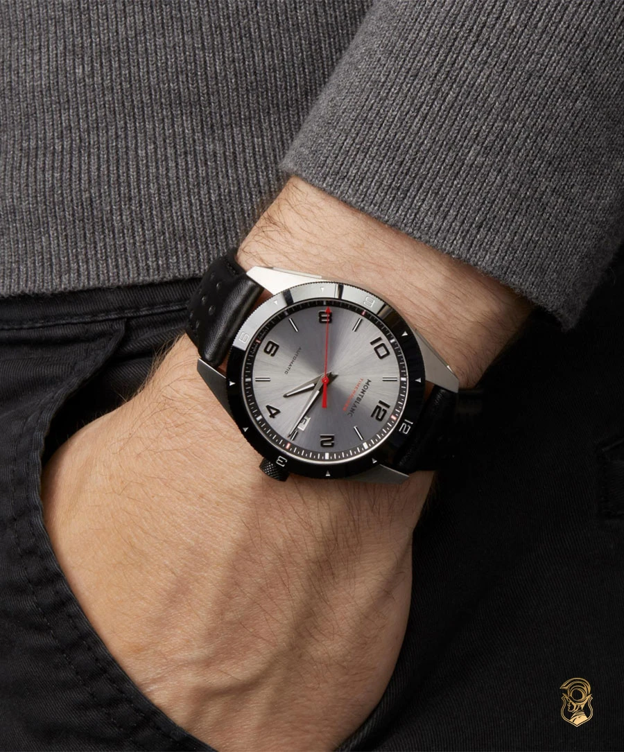 Lấy cảm hứng từ sự đơn giản và rõ ràng của đồng hồ tốc độ ô tô cổ điển, mặt số của chiếc đồng hồ này tập trung vào chỉ báo thời gian thiết yếu thông qua độ tương phản mạnh mẽ giữa màu trắng bạc và đen. Các chữ số Ả Rập lớn cùng kim phút và kim phút được phủ Super-LumiNova® mang lại khả năng đọc hoàn hảo, với kim giây trung tâm mang tính biểu tượng lần đầu tiên bắt mắt với màu đỏ và mũi tên Minerva nổi bật ở đầu. Chỉ báo ngày nằm gần chữ số 15 phút ở vị trí 3 giờ. Viền gốm đen sáng bóng với các chữ số và chỉ số giờ có thể được xoay một chiều để biểu thị múi giờ thứ hai. Để cầm nắm tốt hơn, nó có đường khía ở bên cạnh, lấy cảm hứng từ nắp bình xăng của những chiếc xe đua cổ điển. Để có độ tin cậy và hiệu suất tối đa, vỏ thép không gỉ satin 41 mm với các sừng bán khung có khả năng chịu nước ở độ sâu 100 mét và đã được kiểm tra nghiêm ngặt bởi Phòng thí nghiệm Montblanc 500. Đồng hồ có thể được đeo với dây đeo bằng da màu đen có lỗ không đối xứng hoặc dây đeo cổ tay bằng thép không gỉ ba liên kết mới, hiệu suất cao.