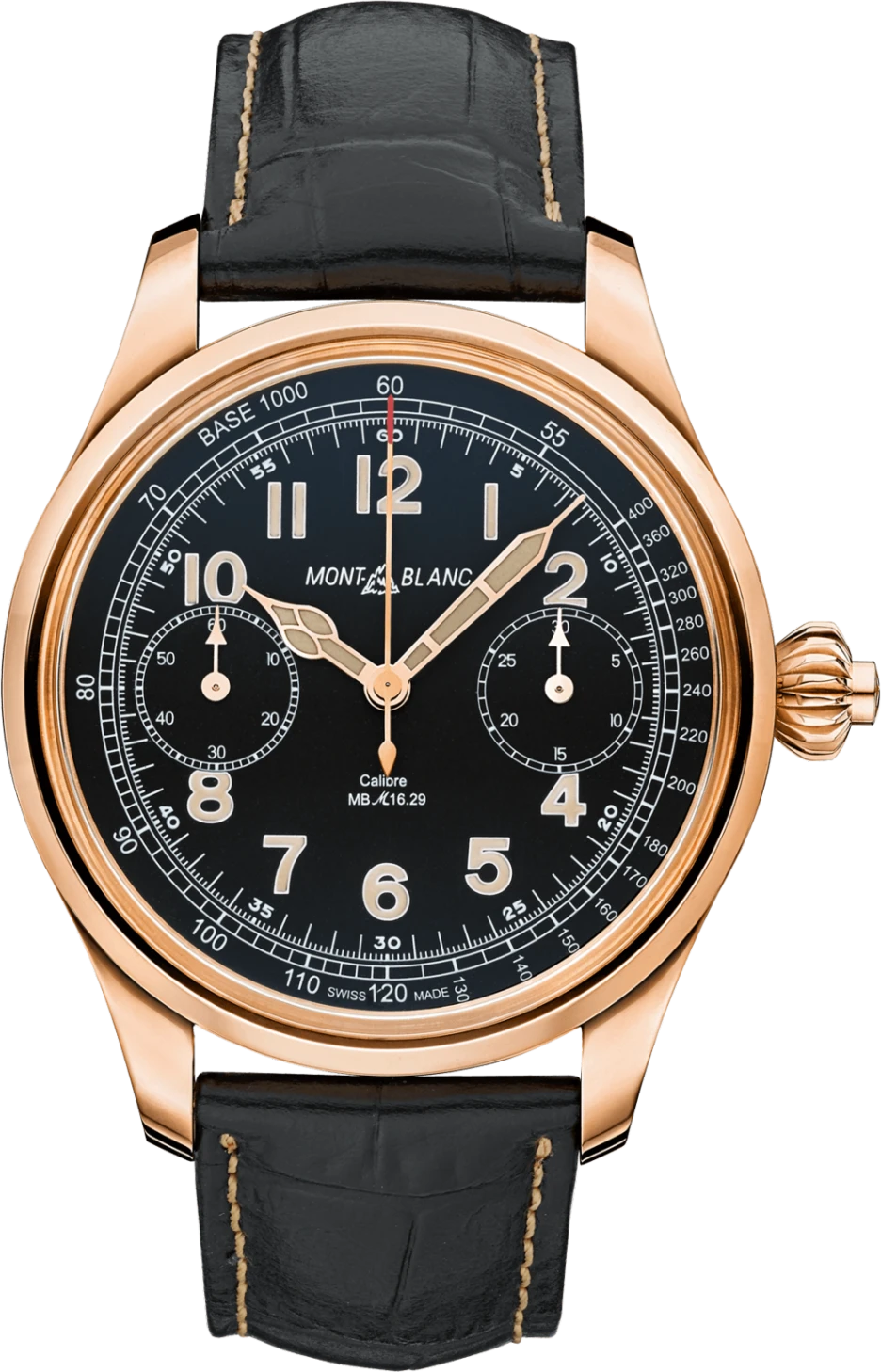 Bộ sưu tập năm 1858 được lấy cảm hứng từ di sản của Minerva với tư cách là một trong những chuyên gia chấm công được kính trọng nhất của Thụy Sĩ. Với bộ sưu tập này, Montblanc làm sống lại tinh thần của những chiếc đồng hồ huyền thoại mà Minerva đã tạo ra từ năm 1858 - và mang đến cho chúng một phong cách cổ điển mới, hiện đại. Giống như người tiền nhiệm mang tính lịch sử từ những năm 1930, Montblanc 1858 Chronograph Tachymeter có mặt số màu đen và các kim có hình dáng lịch sử. Thang đo tốc độ tachymeter của mặt số giúp dễ dàng tính toán tốc độ dựa trên thời gian di chuyển dọc theo phút “chemin de fer” tinh tế. Biểu tượng Montblanc lịch sử ở vị trí 12 giờ và núm vặn nhấn mạnh vẻ cổ điển của chiếc đồng hồ. Được phát triển hoàn toàn và chế tạo thủ công nội bộ, Montblanc Calibre MB M16.29 có đường kính “đồng hồ bỏ túi” lớn đi kèm đồng hồ bấm giờ đơn nút bấm với bánh xe cột và ly hợp đĩa ngang. Với vỏ 44 mm được làm bằng vàng đỏ 18 K với các sừng mỏng và hơi cong, Montblanc 1858 Chronograph Tachymeter được sản xuất giới hạn nghiêm ngặt ở 100 chiếc.