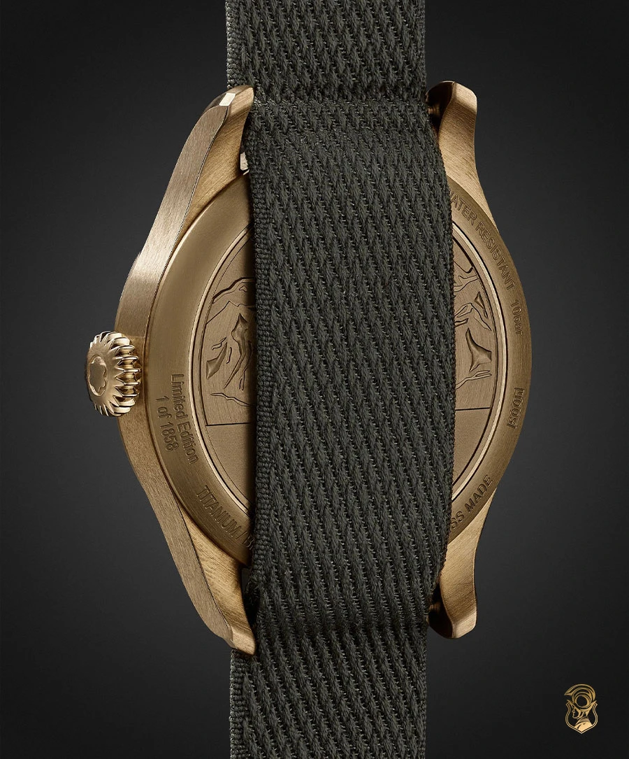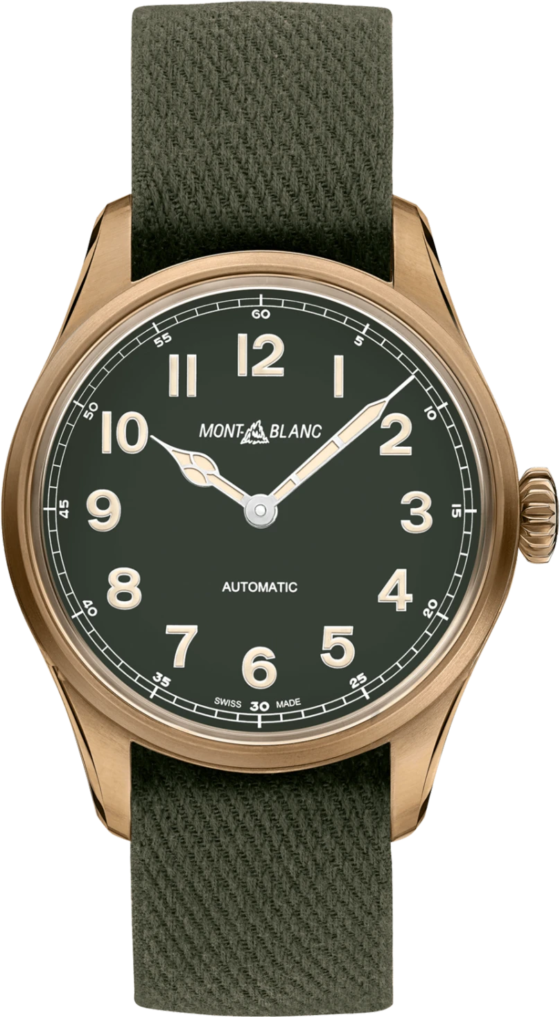 Dòng sản phẩm Montblanc 1858 được lấy cảm hứng từ những chiếc đồng hồ Minerva chuyên nghiệp huyền thoại từ những năm 1920 và 1930, được thiết kế cho mục đích quân sự và thám hiểm. Tái hiện lại những chiếc đồng hồ huyền thoại này, dòng sản phẩm Montblanc 1858 thể hiện tinh thần thám hiểm núi non, thể hiện xu hướng trở về với thiên nhiên hiện đại. Phiên bản giới hạn 1858 tự động 1858 có vỏ bằng đồng được đánh bóng và hoàn thiện bằng sa tanh 40 mm với các sừng vát mỏng. Mặt sau của vỏ cũng được khắc hình ngọn núi Mont Blanc biểu tượng, một chiếc la bàn và hai chiếc cuốc băng bắt chéo nhau, thể hiện tinh thần khám phá núi non. Về mặt thiết kế và mức độ dễ đọc, mặt số màu xanh kaki tương phản với các kim hình nhà thờ phát quang mang tính lịch sử với thiết kế “cloisonné” hơi cong tạo nên một trong những lớp hoàn thiện đẹp nhất. Các chi tiết khác bao gồm chữ số Ả Rập phủ SuperLumiNova* màu be, vạch phút đường sắt và logo Montblanc nguyên bản từ những năm 1930 với phông chữ lịch sử và biểu tượng của ngọn núi Mont Blanc. Mang đến vẻ ngoài hiện đại, chiếc đồng hồ này được trang bị dây đeo “NATO” dệt màu xanh lá cây chất lượng cao phù hợp với màu mặt số.