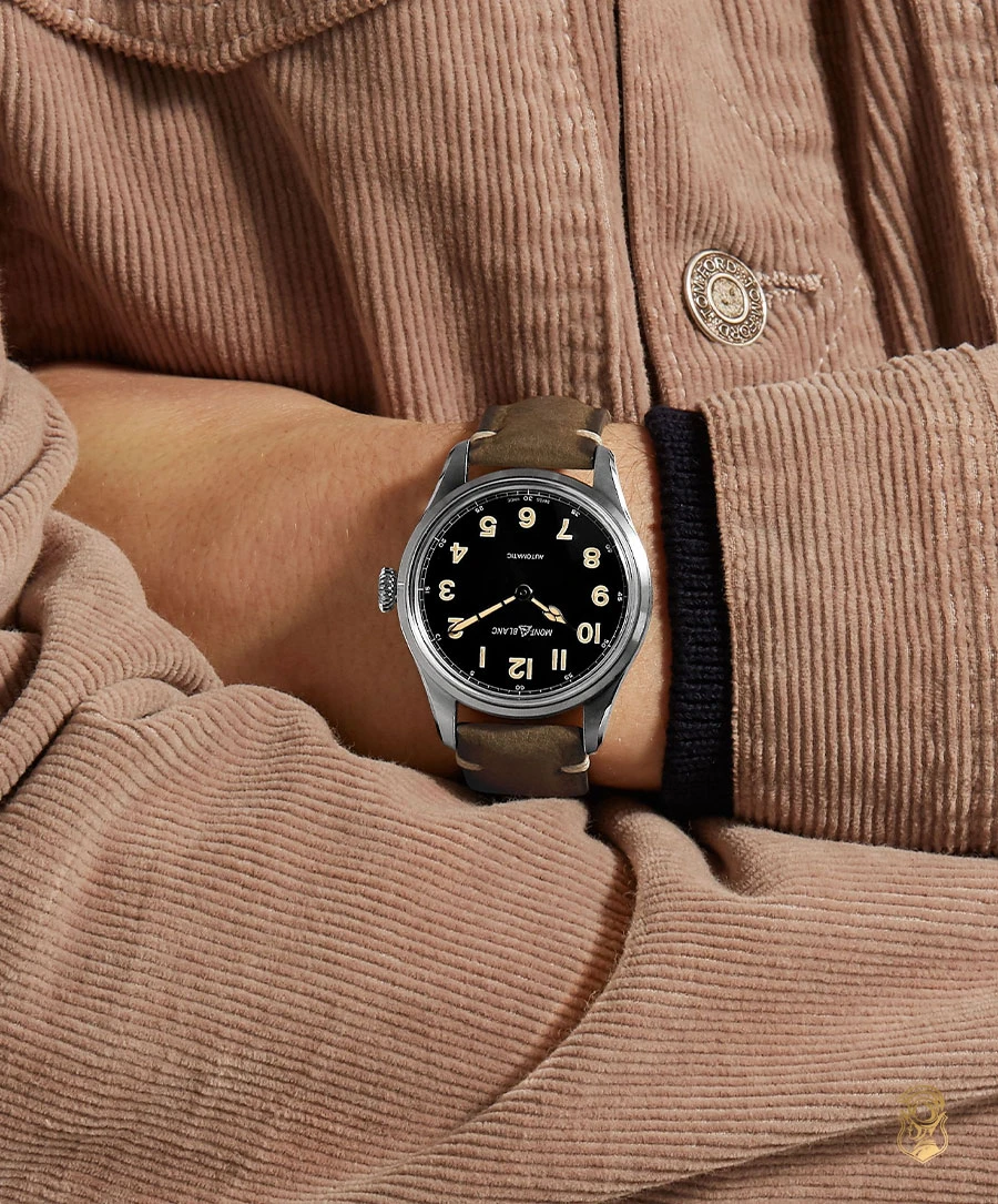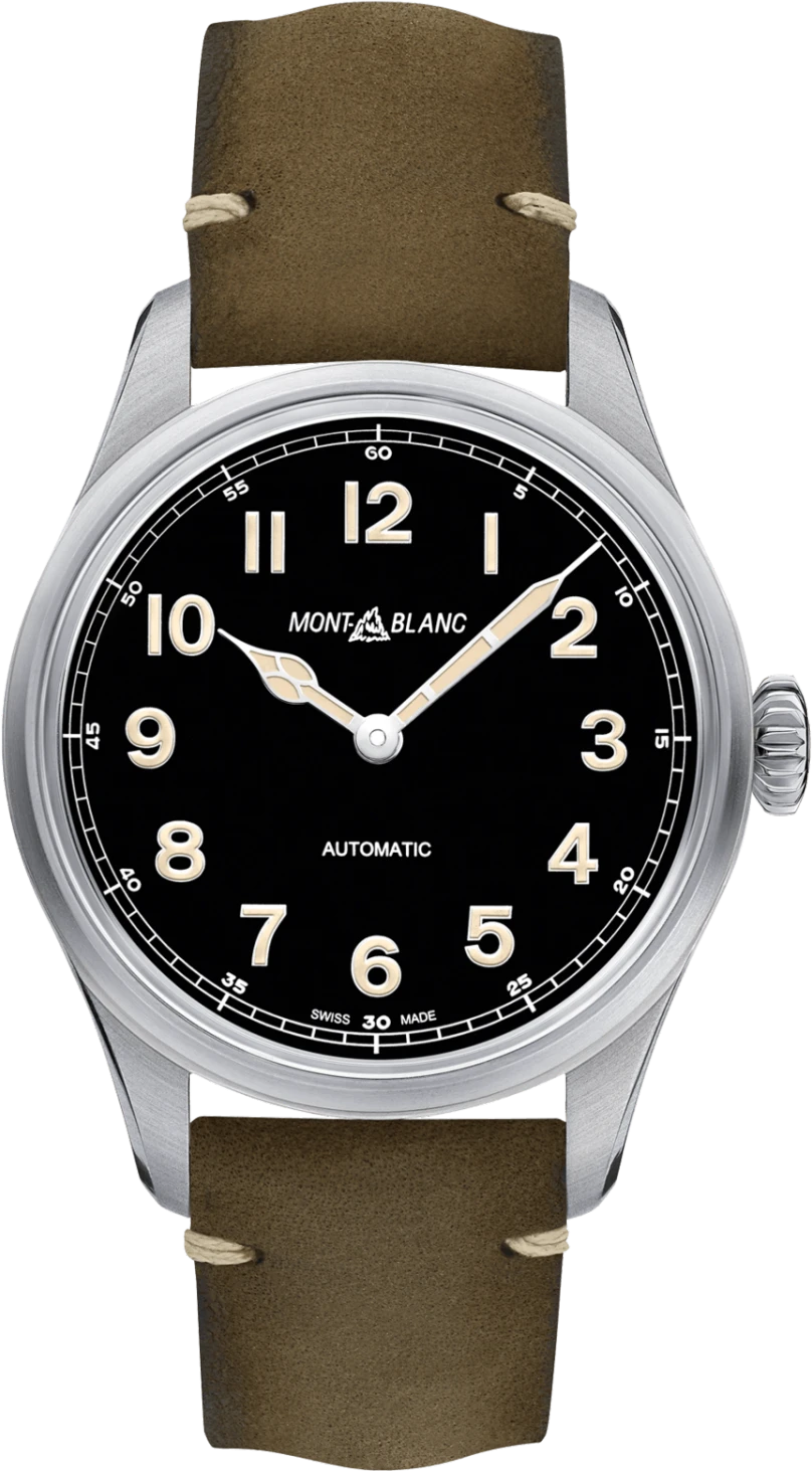 Dòng sản phẩm Montblanc 1858 được lấy cảm hứng từ những chiếc đồng hồ Minerva chuyên nghiệp huyền thoại từ những năm 1920 và 1930, được thiết kế cho mục đích quân sự và thám hiểm. Tái hiện lại những chiếc đồng hồ huyền thoại này, dòng sản phẩm Montblanc 1858 thể hiện tinh thần thám hiểm núi non, thể hiện xu hướng trở về với thiên nhiên hiện đại. 1858 Automation có vỏ bằng thép không gỉ được đánh bóng và hoàn thiện bằng sa tanh 40 mm với các sừng vát mỏng. Mặt sau của vỏ cũng được khắc hình ngọn núi Mont Blanc biểu tượng, một chiếc la bàn và hai chiếc cuốc băng bắt chéo nhau, thể hiện tinh thần khám phá núi non. Để đảm bảo tính dễ đọc và thiết kế, mặt số màu đen tương phản với các kim hình nhà thờ phát quang mang tính lịch sử với thiết kế “cloisonné” hơi cong tạo nên một trong những lớp hoàn thiện đẹp nhất. Các chi tiết khác bao gồm chữ số Ả Rập phủ SuperLumiNova* màu be, vạch phút đường sắt và logo Montblanc nguyên bản từ những năm 1930 với phông chữ lịch sử và biểu tượng của ngọn núi Mont Blanc. Đồng hồ được trang bị dây đeo bằng da bê nubuck màu kaki màu xanh lá cây.