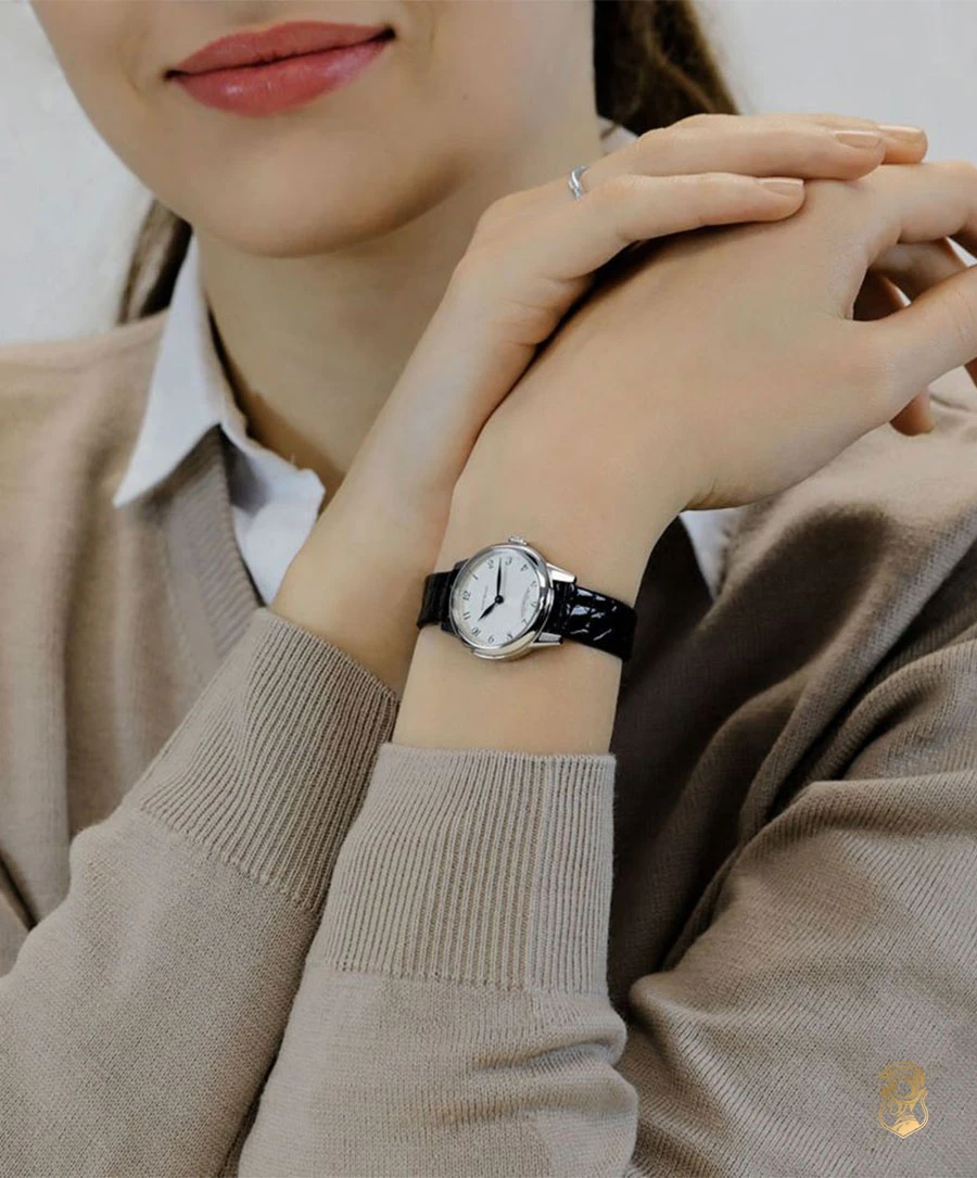 Mặt số: Mặt số guilloché màu trắng bạc với chữ số Ả Rập màu đen