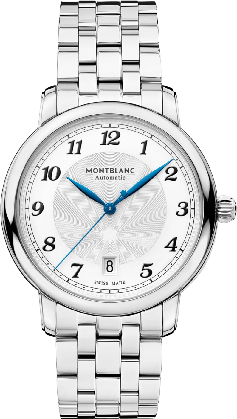 Để kỷ niệm 20 năm Bộ sưu tập Ngôi sao Montblanc năm nay, Maison tái tạo lại bộ sưu tập mang tính biểu tượng của mình với những chiếc đồng hồ lấy cảm hứng từ di sản đặc biệt của Nhà sản xuất Minerva, tái hiện cả tính thẩm mỹ và công nghệ của bộ sưu tập. Star Legacy Automation Date là chiếc đồng hồ thuần khiết nhất trong bộ sưu tập. Nó hiển thị tất cả các mã thiết kế của dòng, bao gồm mặt số tinh tế có họa tiết guilloché ngôi sao nổ mang tính biểu tượng của Montblanc, kim giờ và kim phút hình chiếc lá, các chữ số Ả Rập kiểu Breguet được thiết kế lại gợi nhớ đến đồng hồ bỏ túi Minerva lịch sử, một chiếc phi lê sauté (lên). và xuống các đường guilloché), một đường ray phút đường sắt độc đáo và kim giây có biểu tượng Montblanc ở đầu. Chiếc đồng hồ được đặt trong vỏ thép không gỉ 39 mm, có mặt số màu trắng bạc và đi kèm dây đeo kim loại sáng bóng được phát triển để mang lại sự thoải mái tối đa.