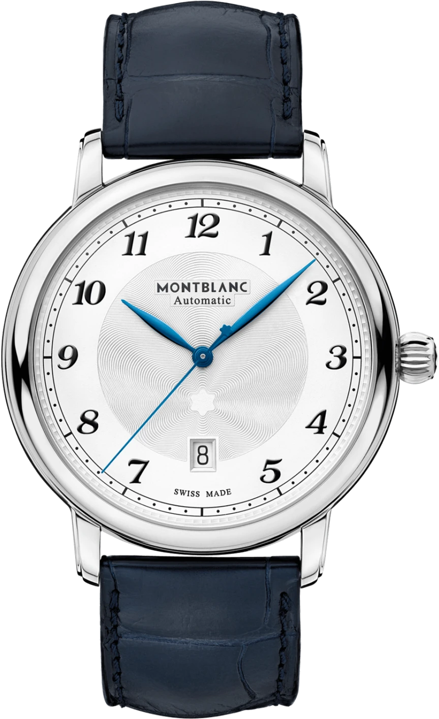 Để kỷ niệm 20 năm Bộ sưu tập Ngôi sao Montblanc năm nay, Maison tái tạo lại bộ sưu tập mang tính biểu tượng của mình với những chiếc đồng hồ lấy cảm hứng từ di sản đặc biệt của Nhà sản xuất Minerva, tái hiện cả tính thẩm mỹ và công nghệ của bộ sưu tập. Star Legacy Automation Date là chiếc đồng hồ thuần khiết nhất trong bộ sưu tập. Nó hiển thị tất cả các mã thiết kế của dòng, bao gồm mặt số tinh tế có họa tiết guilloché ngôi sao nổ mang tính biểu tượng của Montblanc, kim giờ và phút hình chiếc lá, các chữ số Ả Rập kiểu Breguet được thiết kế lại gợi nhớ đến đồng hồ bỏ túi Minerva lịch sử, một chiếc phi lê sauté (lên). và xuống các đường guilloché), một đường ray phút đường sắt độc đáo và kim giây có biểu tượng Montblanc ở đầu. Đồng hồ được đặt trong vỏ thép không gỉ 42 mm, có mặt số màu trắng bạc và đi kèm dây đeo bằng da cá sấu màu xanh do Montblanc Pelletteria ở Florence, Ý chế tạo.