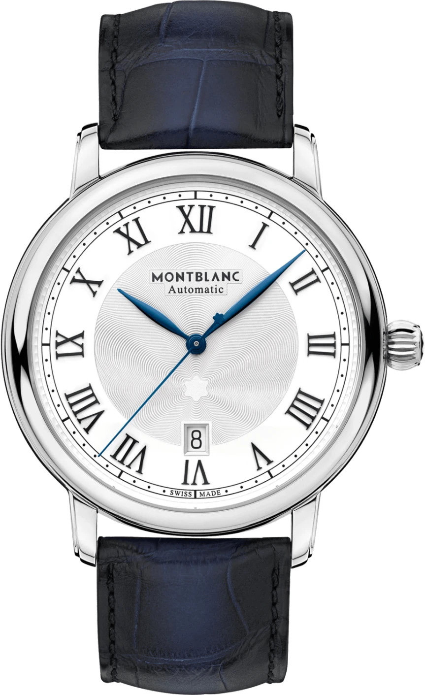Dòng sản phẩm Montblanc Star Legacy lấy cảm hứng từ di sản của Minerva và những chiếc đồng hồ bỏ túi của công ty được sản xuất vào cuối thế kỷ 19 và đầu thế kỷ 20. Phù hợp với tiêu chuẩn thiết kế của dòng sản phẩm, Montblanc Star Legacy Automatic Date có mặt số màu trắng bạc tinh tế với họa tiết guilloché ngôi sao nổ Montblanc, chữ số La Mã, kim hình chiếc lá, họa tiết guilloché “filet sauté” và họa tiết guilloché độc đáo. đường sắt. Đồng hồ được trang bị bộ máy tự động MB 24.01 và có giờ, phút và giây ở trung tâm và lịch ngày ở vị trí sáu giờ. Nó có vỏ bằng thép không gỉ 42 mm và được trang bị dây đeo bằng da cá sấu sfumato màu xanh thời thượng đến từ Richemont Pelletteria ở Florence, Ý.