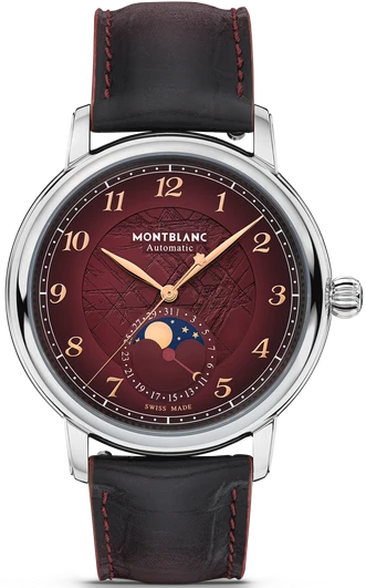 Phiên bản giới hạn Montblanc Star Legacy Moonphase 1786 chiếc là lời tri ân dành cho Jacques Balmat, người đầu tiên chinh phục đỉnh Mont Blanc vào năm 1786. Chiếc đồng hồ sở hữu mặt số màu đỏ tía họa tiết sông băng với hiệu ứng sfumato xung quanh bên ngoài, kim và chữ số kiểu phi lê xào, mạ vàng hồng, cùng biểu tượng Montblanc trên quả cân của kim giây. Chức năng lịch tuần trăng được đánh giá cao này hiển thị các pha mặt trăng ở vị trí 6 giờ với mặt trăng và các ngôi sao mạ vàng hồng thanh lịch trên nền xanh lam, bao quanh bởi một ô chỉ báo ngày tròn. Mẫu đồng hồ này được trang bị bộ máy tự động MB 24.31 và được đặt trong vỏ thép không gỉ 42 mm với nắp lưng mở. Đồng hồ đi kèm dây đeo bằng da bê có thể thay thế với họa tiết da cá sấu và hiệu ứng sfumato dọc. Bộ máy tự động: Giờ - Phút - Giây - Ngày - Lịch tuần trăng. Lịch bằng tay; Hiển thị lịch tuần trăng. Chiều rộng càng đồng hồ: 21 mm