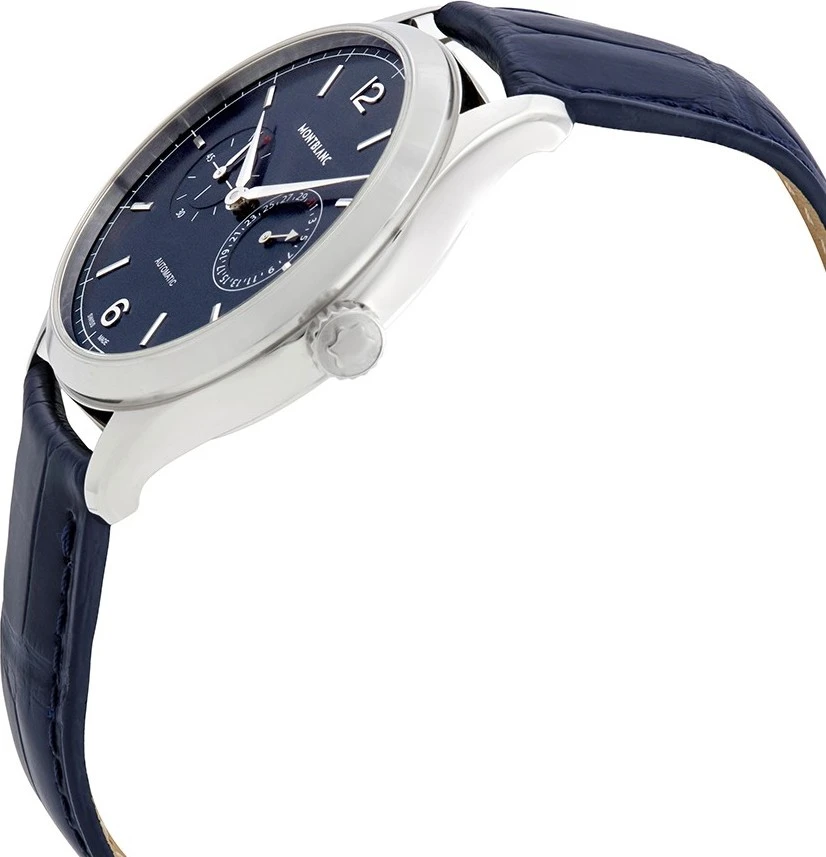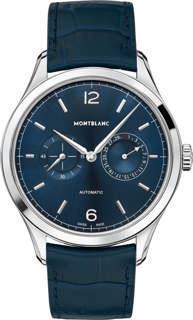 Niềm đam mê chế tạo đồng hồ cao cấp của Montblanc là động lực thúc đẩy Bộ sưu tập Montblanc Heritage Chronométrie. Từ bộ máy, chức năng, tính năng phức tạp và độ chính xác cho đến các chi tiết và thiết kế mang tính thẩm mỹ—mọi thứ kết hợp với nhau để tôn vinh di sản chế tạo đồng hồ cao cấp của Thụy Sĩ. Đồng hồ đôi Montblanc Heritage Chronométrie Twincounter Date có tính năng lịch ngày được phát triển và sản xuất hoàn toàn nội bộ bởi các kỹ sư và thợ đồng hồ bậc thầy của Montblanc. Một trong những tính năng hữu ích nhất, chức năng ngày, được biểu thị trên chiếc đồng hồ này ở mặt số phụ ở vị trí 3 giờ, thay vì ở ô lịch ngày truyền thống. Kích thước của bộ đếm đã được tối đa hóa để cho phép đọc ngày chia độ rõ ràng, trong khi kim ngày được mạ rhodium mang lại khả năng hiển thị cao. Vỏ thép không gỉ đánh bóng 40 mm mỏng đầy phong cách, chỉ cao 9,85 mm và nổi bật với các sừng cong được phủ sa tanh ở bề mặt bên trong, khẳng định sự tận tâm của Montblanc đối với các chi tiết đồng hồ. Mặt số tinh xảo nâng cao hơn nữa đẳng cấp của thiết kế, với lớp hoàn thiện tia mặt trời màu xanh cổ điển, các kim hình thanh kiếm có mặt và các cọc số được phủ rhodium cũng như các chữ số Ả Rập 6 và 12 nổi bật. Để có độ tin cậy và hiệu suất tối đa, chiếc đồng hồ này đã được kiểm tra nghiêm ngặt bởi Phòng thí nghiệm Montblanc Test 500.